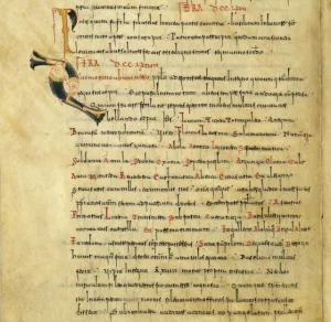 “En el nombre del Señor. Yo Vítulo, abad, aunque indigno, siervo de todos los siervos de Dios, y mi hermano carnal el presbítero Ervigio, nos ofrecemos a mis señores y patronos san Emeterio y san Celedonio, cuya basílica hemos construido con nuestras manos desde los cimientos yo y mi hermano Ervigio en el lugar de Taranco, valle de Mena; y a san Martín, a quien con el favor de Dios también hemos hecho basílica con nuestras manos en la ciudad de Área-Paternina, territorio de Castilla; y a san Esteban, a quien igualmente hicimos por nosotros mismos basílica en el lugar de Burceña, valle de Mena, que Lobato y Muniadonna nuestros padres nos dejaron conformes y alegres en la religión de Dios sin recelo de nuestra infancia, bajo la protección divina.»