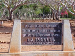 Colón y sus exploradores estuvieron navegando un mes, recorriendo la costa este y norte de la isla sin encontrar el sitio adecuado. Sobrevino una fuerte tormenta y el temporal empujó el barco a un lugar que era justo lo que estaban buscando. Un litoral costero que parecía un puerto natural. En el horizonte se veía una loma donde podría levantarse una fortaleza y una llanura de tierras colmadas de vegetación y con dos riachuelos para agua dulce, y además las minas de oro estaban cerca. Era sin duda el lugar adecuado para levantar una ciudad.