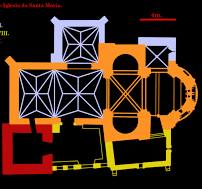 Las capillas semicirculares del crucero y la cabecera forman un sorprendente ábside. En el siglo XVI se añadieron, además de las bóvedas, la sacristía y una capilla.