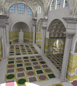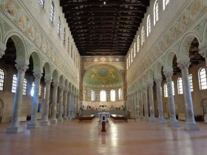 La palabra basílica, de origen griego, significa “casa real”. Originalmente, estos grandes edificios públicos servían como puntos de encuentro, mercados e incluso tribunales de justicia. Su diseño rectangular destacaba por una nave central alta y espaciosa, ideal para programas o sucesos públicos, flanqueada por naves laterales destinadas a oficinas, asientos o tiendas.