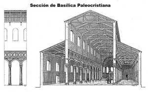 En la península ibérica con los visigodos en los siglos V y VI, se edificaron basílicas que seguían la tipología romana, pero adaptadas a las corrientes artísticas de la época.