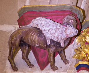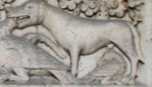 En la Iglesia de San Sebastián del Pino, junto al municipio de Urbel del Castillo en el norte de Burgos, hay un capitel en el que un lobo ataca a un cordero.