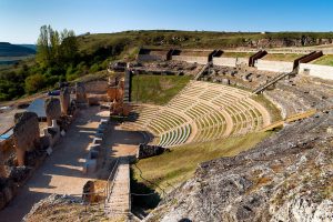 En el corazón de la provincia de Burgos, a solo 5 km de Coruña del Conde, se encuentra el sorprendente yacimiento romano de Clunia. Antes de la romanización, la comarca estuvo habitada por los pueblos celtíberos de arévacos y turmogos.