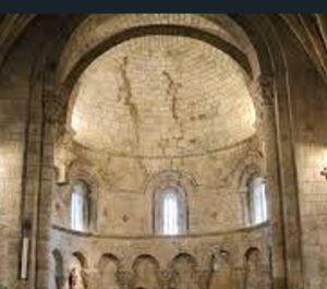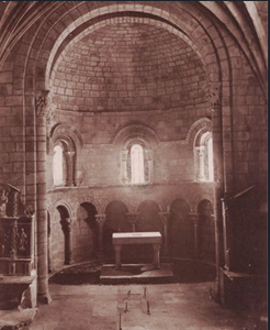 Dos impostas dividen el interior del ábside: una a la altura de la base de las ventanas. En la sección inferior hay diez arcos ciegos de medio punto con arquivoltas de baquetón. En la superior hay tres ventanas de medio punto y una imposta ajedrezada de la que nace en un tercer tramo la bóveda.