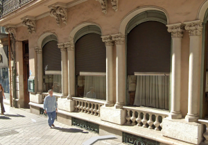 Las ventanas de la planta baja están compuestas por arcos deprimidos soportados por capiteles corintios que se apoyan en columnas con un fuste estilizado sobre un basamento de piedras sólidas y con una línea de jarras de piedra que aligeran el molde. En la calle Constitución hay seis ventanales y una puerta de entrada para el servicio y para el segundo y tercer piso.