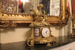 Al pasar la puerta de entrada, te topas con un espacioso vestíbulo que tiene el techo y las paredes muy ornamentados. Una buena lámpara cuelga del techo. Debajo de un gran espejo, se observa una cómoda que contiene un magnífico reloj del siglo XIX. Dentro de una hornacina, además, hay una escultura.