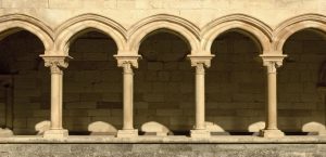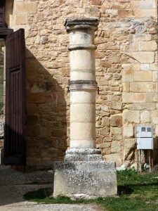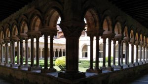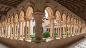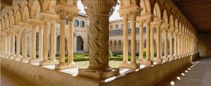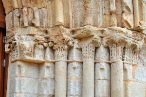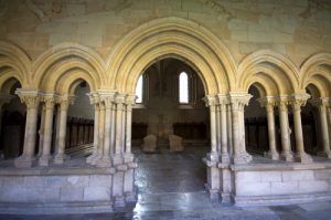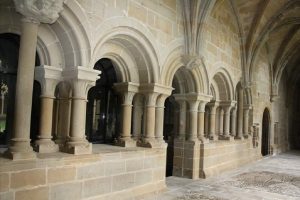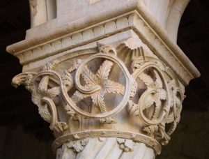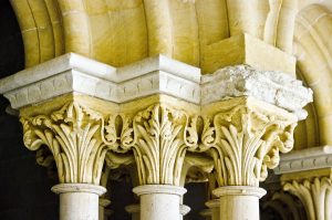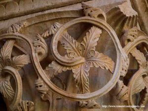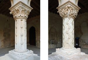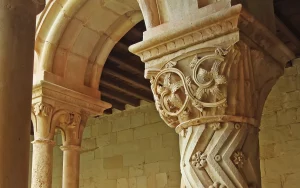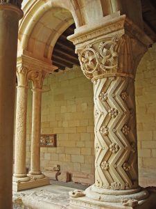En el ángulo suroeste del claustro, hay una columna con basa y capitel que no tiene parangón en la península. Su apoyo tiene una excelente lengüeta y en el fuste hay una preciosa decoración zigzagueante sembrada de flores. Se remata con un capitel maravilloso, espléndido y elegante, esculpido con finas láminas y penetrantes incisiones que crean un efecto de relieve que cambia con la luz solar. Es una verdadera filigrana artesanal y uno de los capiteles más espectaculares del Císter.