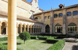 El claustro es, sin duda, la joya del monasterio. La galería sur se derrumbó y fue reemplazada en el siglo XVI por una construcción gótica. Su planta baja cuenta con cinco amplios arcos apuntados, y la superior, con arcos conopiales geminados, típicos del gótico plateresco.