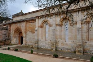 La iglesia del monasterio tiene dos puertas abocinadas con arquivoltas. La de la nave del Evangelio era utilizada por los lugareños, mientras que la otra comunica directamente con el claustro.