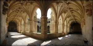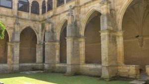 El claustro, conocido como El Claustro del Silencio, es la joya románica del complejo. Data del siglo XII y destaca por la riqueza de sus capiteles, tallados con gran maestría. En ellos se representan escenas bíblicas, músicos tocando la flauta y rabel, animales como leones, figuras fantásticas como grifos y motivos vegetales.