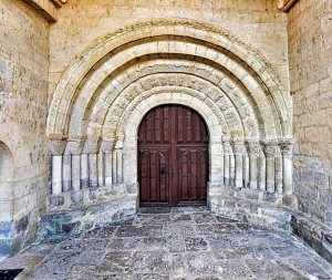 Los elementos románicos se aprecian en las dos portadas del templo, situadas en los muros sur y oeste, ambas protegidas por atrios.