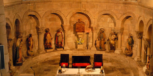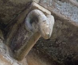 Los capiteles están bien tallados, pero muy deteriorados por el incendio que la iglesia sufrió durante la Guerra Civil de 1936.