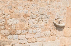 Los muros de la ermita están construidos con mampostería irregular y piezas reutilizadas. En ellos se pueden apreciar sillares con relieves romanos e incluso símbolos paganos como un cuerno de la abundancia, que contrastan notablemente con la función religiosa del templo. La reutilización de materiales no solo se debe a su disponibilidad, sino que también refleja una continuidad cultural, adaptando símbolos antiguos a nuevos contextos. Como se ha dicho: «La Ermita del Santo Cristo de San Sebastián es un ejemplo destacado de cómo la arquitectura puede servir de puente entre diferentes épocas y culturas”.