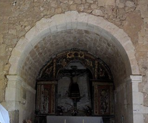 “El interior de la ermita es austero, pero alberga un valioso patrimonio artístico. En el altar mayor hay un crucifijo románico del siglo XIII, y en las paredes se conservan varios frescos góticos”.