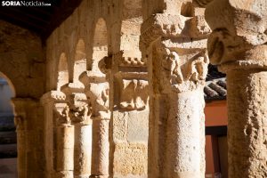 El estudio de Pedro Artigas, publicado en el Boletín de la Sociedad Española de Excursionistas, sostiene que la primera galería porticada reconocida podría ser la de San Miguel de San Esteban de Gormaz. Esta atribución se fundamenta en un canecillo que representa a un monje con túnica y capucha, cuya cabeza se inclina sobre un libro abierto, acompañado por una inscripción que reza: «ULIANUS MAGISTER FECIT ERA MCLXIIII». Esta frase se traduce como: «Julián, maestro, lo hizo en la era 1154», lo que corresponde al año 1081 d. C. Así, este canecillo se convierte en la pieza más antigua de la arquitectura románica española. La postura del monje simboliza la devoción a la enseñanza y la dedicación de su vida al estudio de las Sagradas Escrituras; el libro abierto encarna el conocimiento y la sabiduría.