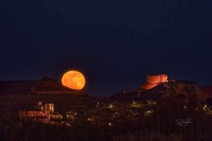Cuando la luna está cerca del horizonte, la luz que refleja atraviesa una porción más gruesa de la atmósfera para alcanzarnos. Esto aumenta la dispersión de la luz, eliminando los colores azules y dejando que predominen los tonos anaranjados y rojos.