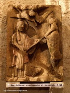 Ubicada bajo la torre cilíndrica de la colegiata y datada en el siglo XII, la pila de Santa Juliana es una de las más grandes de la península. Esculpida en un único bloque, constituye una magnífica pieza del románico con forma de cono truncado. Su borde está decorado con una banda entrelazada de cilindros verticales que sobresalen en la parte superior.