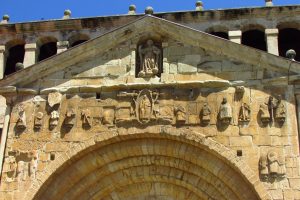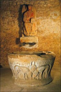 Ubicada bajo la torre cilíndrica de la colegiata y datada en el siglo XII, la pila de Santa Juliana es una de las más grandes de la península. Esculpida en un único bloque, constituye una magnífica pieza del románico con forma de cono truncado. Su borde está decorado con una banda entrelazada de cilindros verticales que sobresalen en la parte superior.