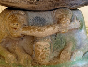 El pedestal, por su parte, es una poderosa metáfora de la vida después del bautismo. Los leones devoran al hombre prebautismal y lo liberan para conducirlo a la nueva vida espiritual. El hombre, purificado del pecado, se convierte en hijo de Dios y es acogido en la Iglesia.