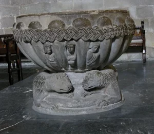 Sus relieves transmiten pasajes del Nuevo Testamento, entrelazando lo escrito y lo leído con un lenguaje visual que trasciende el tiempo. Su forma circular simboliza la eternidad, mientras que el agua, elemento vital y purificador, actúa como testigo del bautismo, entendido como símbolo de renacimiento en la vida cristiana.