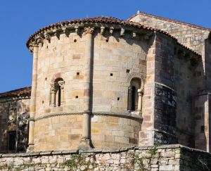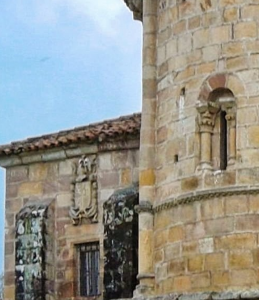 En cada calle del ábside se abre una ventana, salvo en la lateral sur, que desapareció con la construcción de la sacristía. En la pared de esta dependencia se conserva esculpido el escudo de la familia Ceballos, con sus armas y las de sus parientes. Estas familias ejercieron el patronazgo sobre la abadía entre los siglos XVI y XVIII. La heráldica refleja enlaces matrimoniales estratégicos que fortalecieron su poder y posición social. Los dos vanos restantes son de medio punto, y debajo de ellos corre una imposta de billetes. Los capiteles, muy deteriorados, están decorados con bolas.