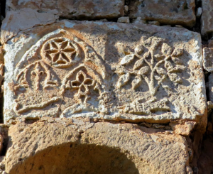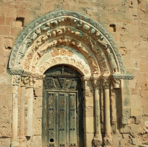 En las dovelas del arco achatado de acceso al templo, algunos textos quieren ver un zodíaco. Se conserva una inscripción en latín en la cara frontal exterior que reza: