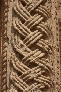 En el arco de triunfo de la Iglesia de San Andrés de Soto de la Bureba, la ornamentación incluye roleos, entrelazos y espirales en los cimacios de los capiteles y los fustes de las columnas.