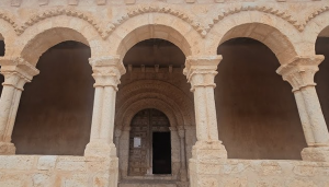 La galería porticada posee siete arcos más otro lateral en el lado oeste. Los arcos son de medio punto y se apoyan sobre columnas dobles con capiteles decorados con cestas vegetales.