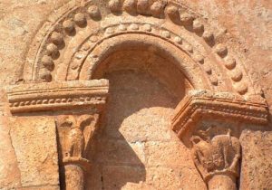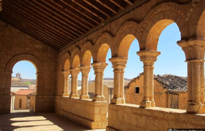 Lo que más llama la atención es su galería porticada, apoyada en el muro sur, que estaba tapiada con ladrillo, al igual que la puerta de entrada al templo. Un lugareño me mostró cómo acceder al pórtico por el hueco occidental y nos explicó que la habían tapiado porque era utilizada como establo.