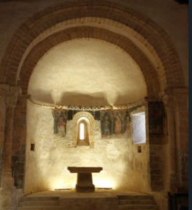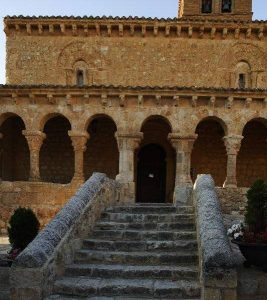 Desde la calle que lleva al templo, la galería porticada y su armoniosa escalinata de acceso capturan la atención. Adosada al muro sur, esta galería del siglo XI está considerada la más antigua de Castilla. Además de su función estética, sirvió para estabilizar la construcción, como punto de encuentro para los habitantes y cobijo para los peregrinos.