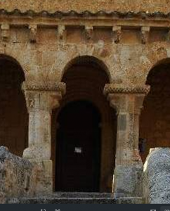 La puerta de la galería tiene un arco de medio punto. Está decorada con capiteles y cimacios muy deteriorados que se apoyan en robustas columnas dobles asentadas sobre un poyo corrido.