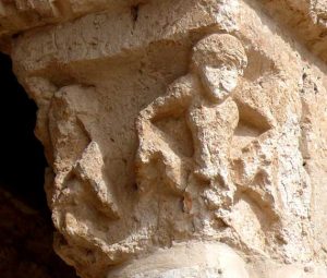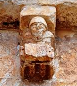 La imagen del monje con un libro abierto en el canecillo de la cornisa de la galería porticada es la seña de identidad de la iglesia de San Miguel.