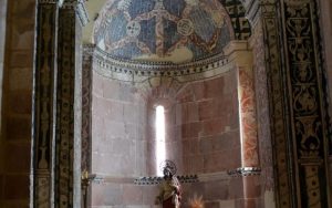 La cabecera está formada por tres ábsides semicirculares, que refuerzan la jerarquía del espacio litúrgico.