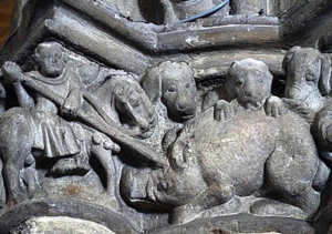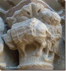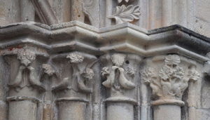 Las columnas de las naves están decoradas con capiteles esculpidos protogóticos. Tienen en sus cestas escenas románicas del bestiario como dragones, arpías y grifos. Es sobresaliente el capitel de la caza de un jabalí rodeado por perros que le acosan y muerden. Se ven dos jinetes, uno tocando un cuerno para asustar al animal y el otro clavando su lanza en la bestia. Se ha dicho que es el triunfo del caballero, el Bien sobre el Mal, el jabalí. Hay capiteles góticos con gestos de emoción de los personajes: con amplias sonrisas o gestos de tristeza.