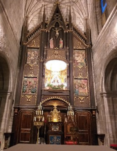El retablo mayor, del siglo XVI, es de estilo renacentista con influencias manieristas y está dedicado a la Virgen del Puerto.