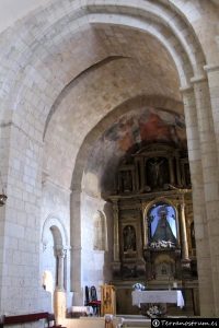 El interior del templo responde al románico de finales del siglo XI y comienzos del XII. La iglesia consta de una sola nave rectangular, dividida en tres tramos cubiertos con bóvedas de lunetos sobre arcos fajones que descansan en semicolumnas adosadas con capiteles esculpidos. El templo está solo iluminado por las estrechas ventanas absidiales, lo que acentúa la espiritualidad. El fiel avanza desde la penumbra de la nave hasta la luz del ábside.