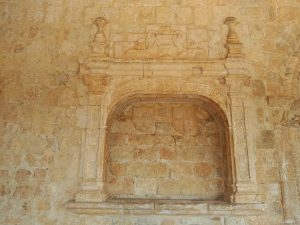 En el interior del pórtico, un arcosolio del siglo XVI se integra en el muro del templo. Está enmarcado y tiene relieves de pináculos y escudos con los cuarteles de los linajes Pacheco, Enríquez, Cabrera y Mendoza.