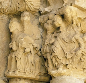 Un rasgo común en toda la imaginería de la portada y los capiteles es la representación de los personajes con largos cabellos, barbas y, en algunos casos, bigotes. Expertos como el profesor jesuita Huidobro Serna y, años después, el catedrático y académico Martínez Díez sugieren que pudo ser un intento del artesano por dar mayor solemnidad o importancia a las figuras, o quizás por acercarse a la imaginería bíblica tradicional.